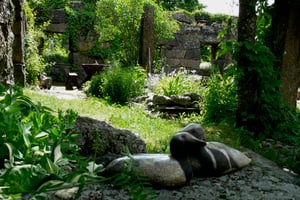 Heinäkuussa 2025 taidepuutarhassa on esillä Annikki Kivistön keramiikkaa.